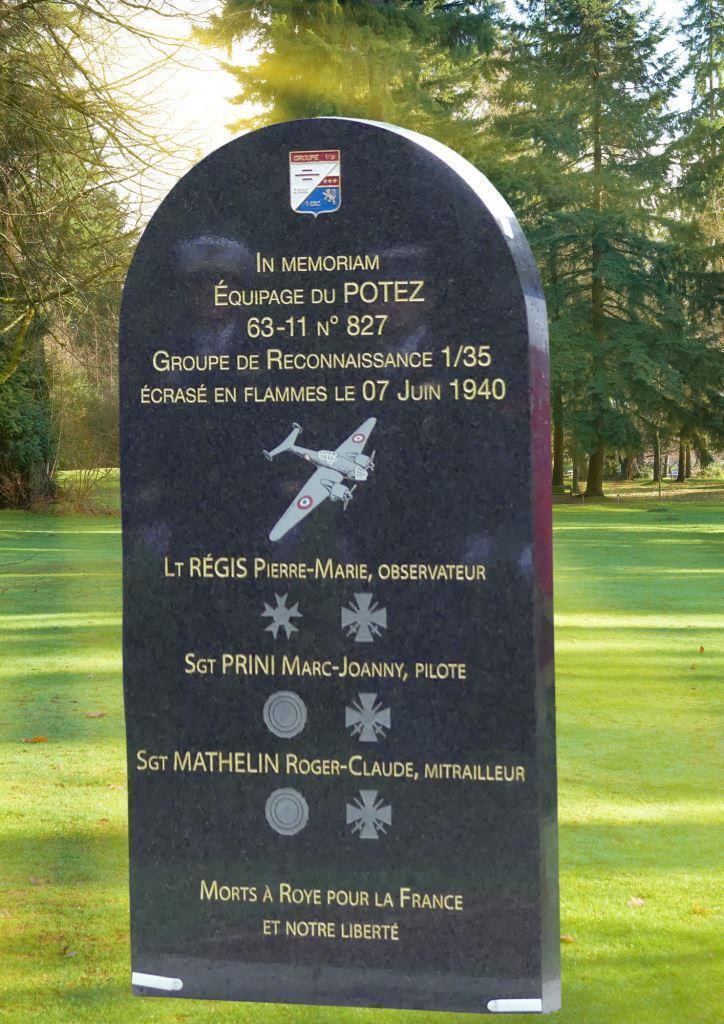 Le 7 juin 2025, à 10 heures, a été inauguré au Parc Demouy d'un monument à la mémoire de l'équipage du Potez 63/11 abattu au-dessus au même endroit 85 ans auparavant.